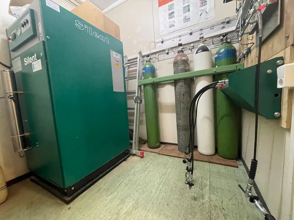 De vereÂniÂging beschikt over een eigen compressor. Daarmee kunnen we duikÂflessen vullen tot een druk van 200 bar. Voor leden is het gratis, waarÂdoor je al gauw zo’n €4,50 bespaart ten opzichte van commerÂciële vulstaÂtions. Je mag als lid zoveel vullen als je wil! De compressor wordt jaarÂlijks profesÂsiÂoÂneel onderÂhouden, waarÂdoor de kwaliÂteit van de lucht gewaarÂborgd blijft. Elke dinsÂdagÂavond is er iemand van de vulploeg aanwezig om jouw fles te vullen. Op afspraak vullen is ook mogelijk.
